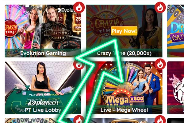 - Crazy Time - a giant wheel spins with Double and Triple that escalates values until a final sector hits.